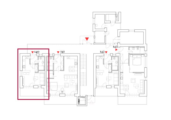 Junior Suite Apartmá disponuje zádveřím s úložným prostorem, kuchyňským koutem, elegantní koupelnou, útulným obytným pokojem a prostornou terasou propojující interiér s okolní přírodou. Každý detail odráží švýcarskou kvalitu a nadčasový design.