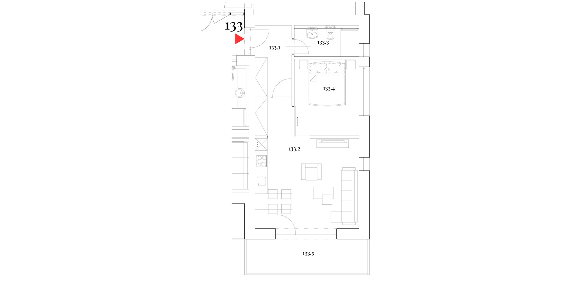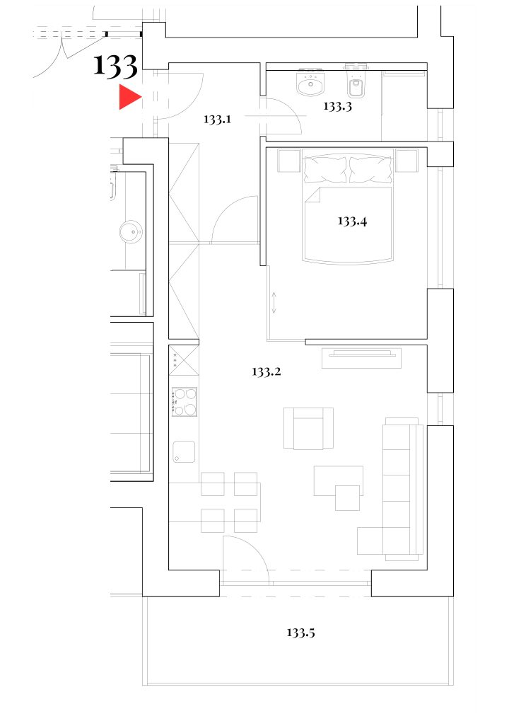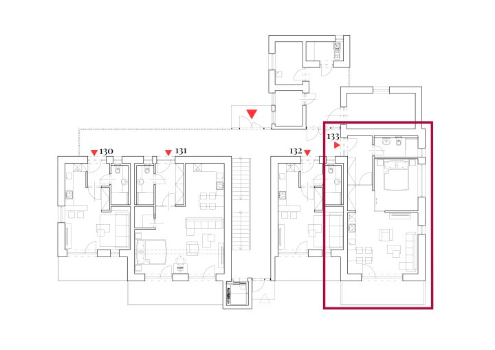 Junior Suite Apartmá disponuje zádveřím s úložným prostorem, útulným obytným pokojem s kuchyňským a jídelním koutem, samostatnou ložnicí, elegantní koupelnou, příjemnou terasou propojující interiér s okolní přírodou. Ideální volba pro ty, kteří si potrpí na prostor, soukromí a špičkový komfort ve švýcarském stylu.