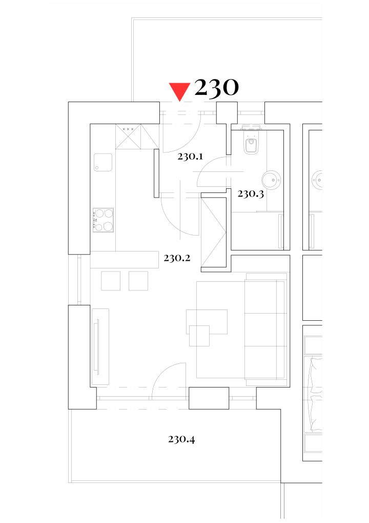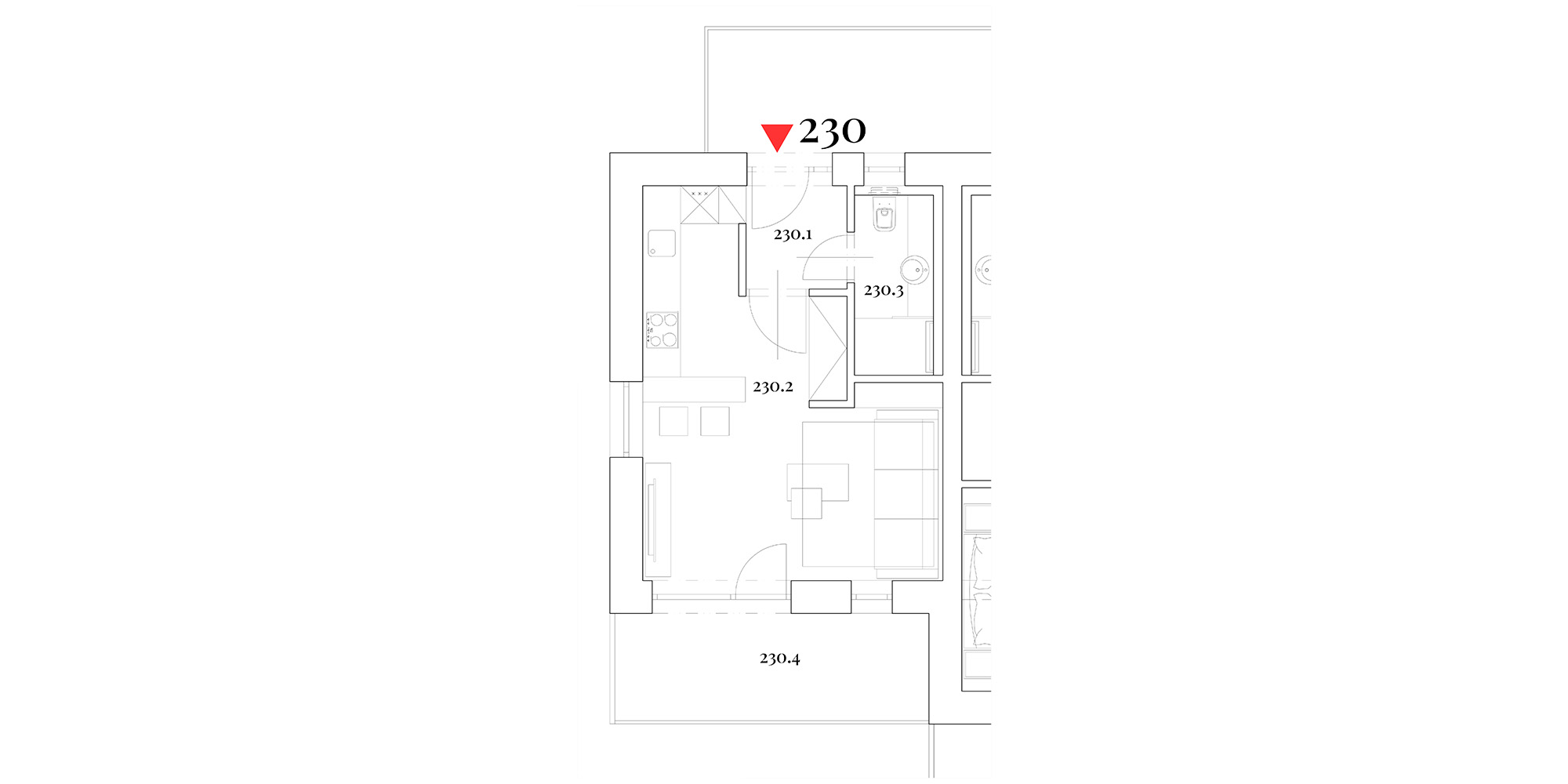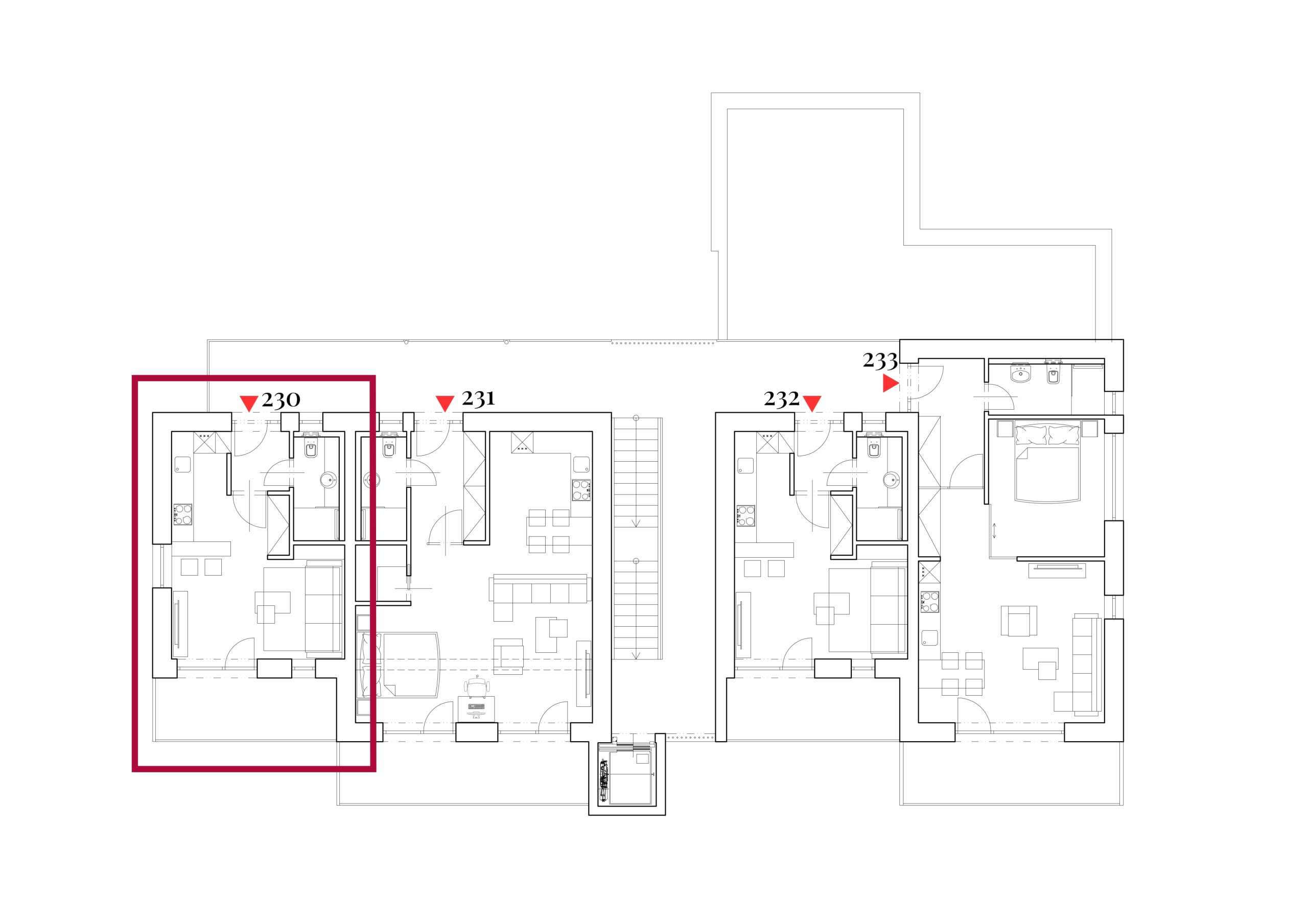 Junior Suite Apartmá disponuje zádveřím s úložným prostorem, kuchyňským koutem, elegantní koupelnou, útulným obytným pokojem a prostornou lodžii propojující interiér s okolní přírodou. Každý detail odráží švýcarskou kvalitu a nadčasový design.