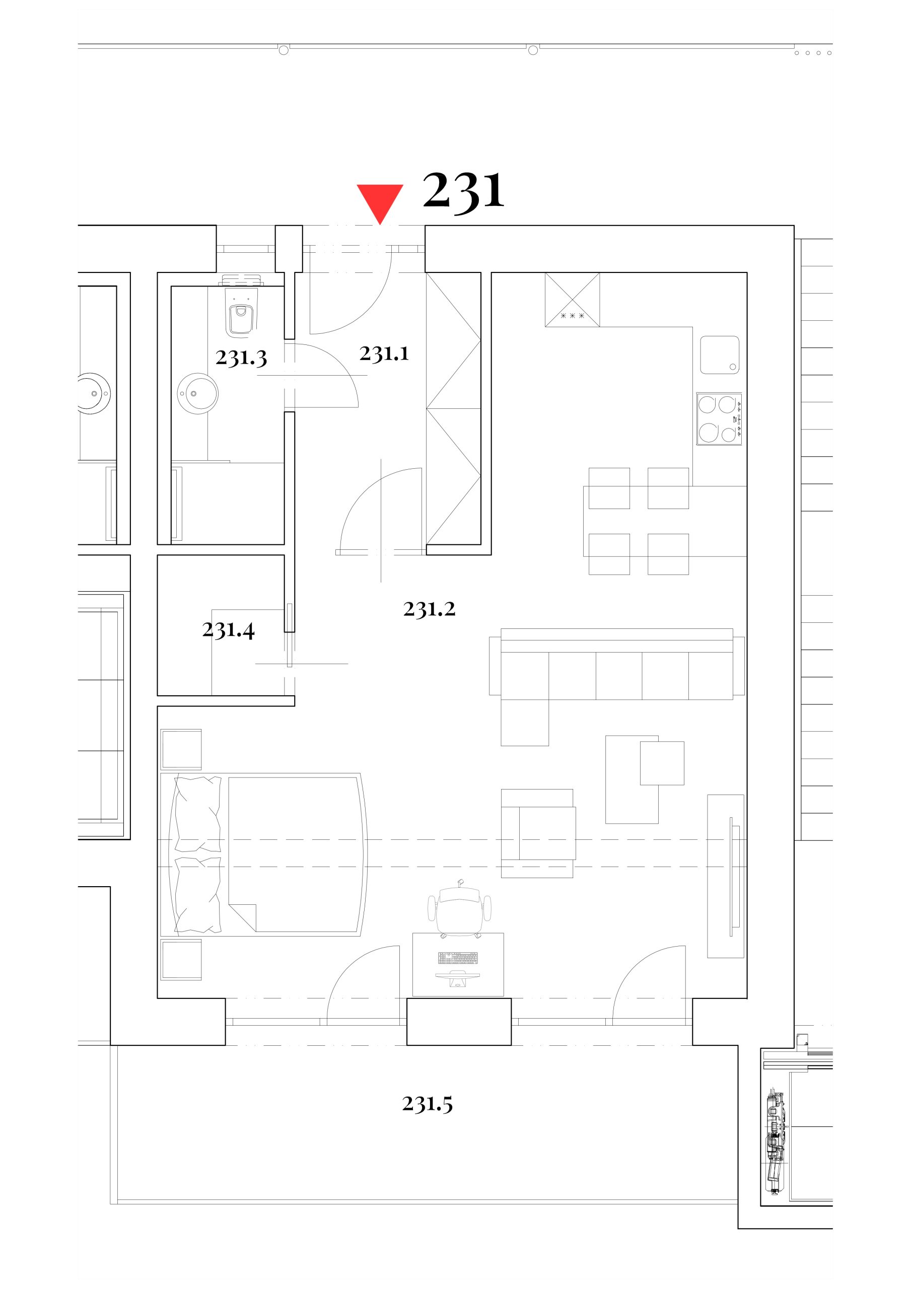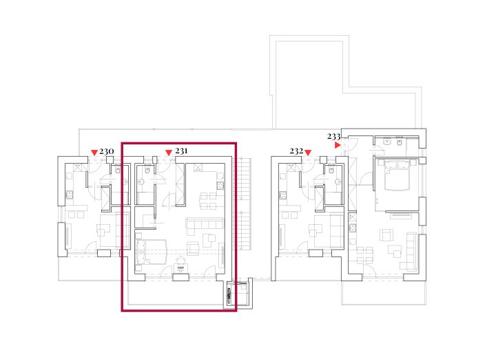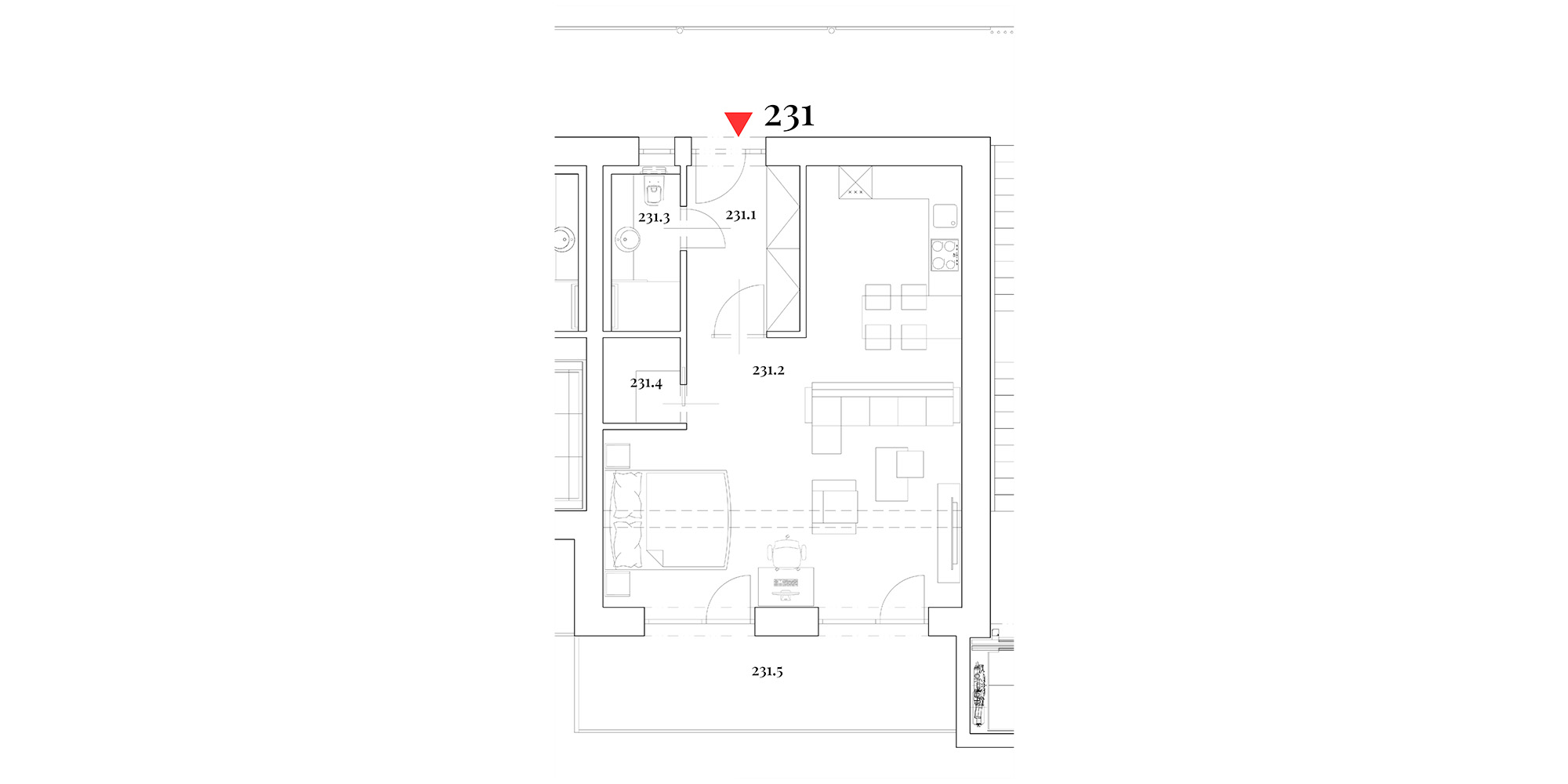 Junior Suite Apartmá disponuje zádveřím s úložným prostorem, kuchyňským a jídelním koutem, elegantní koupelnou, velkorysým obytným pokojem s přímým vstupem na prostorný balkón propojující interiér s okolní přírodou. Každý detail odráží švýcarskou kvalitu a nadčasový design.