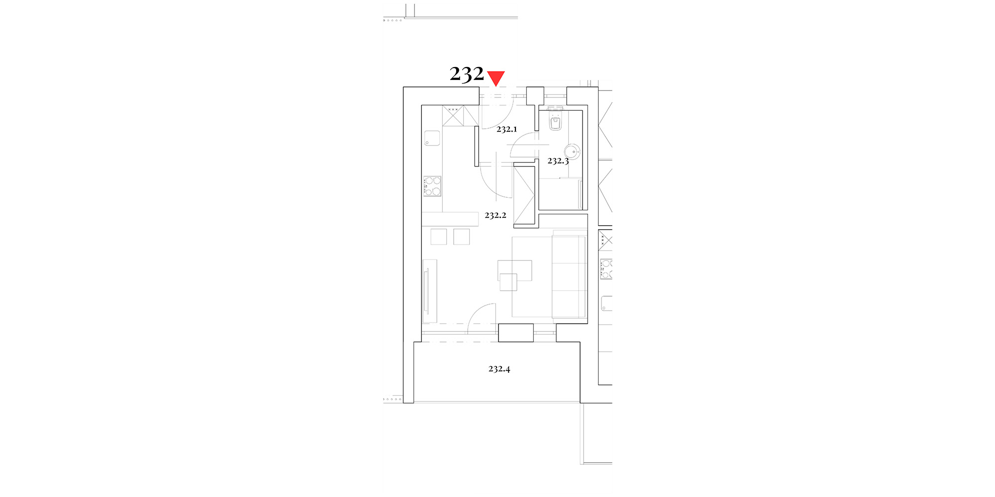 Junior Suite Apartmá disponuje zádveřím s úložným prostorem, kuchyňským koutem, elegantní koupelnou, útulným obytným pokojem a prostornou lodžii propojující interiér s okolní přírodou. Každý detail odráží švýcarskou kvalitu a nadčasový design.