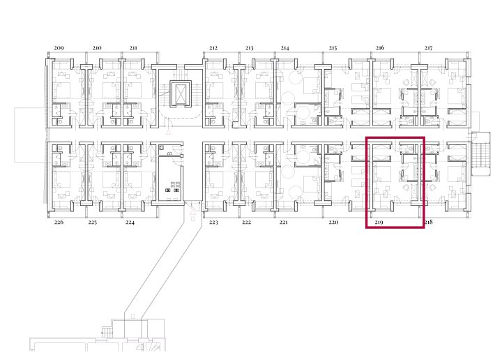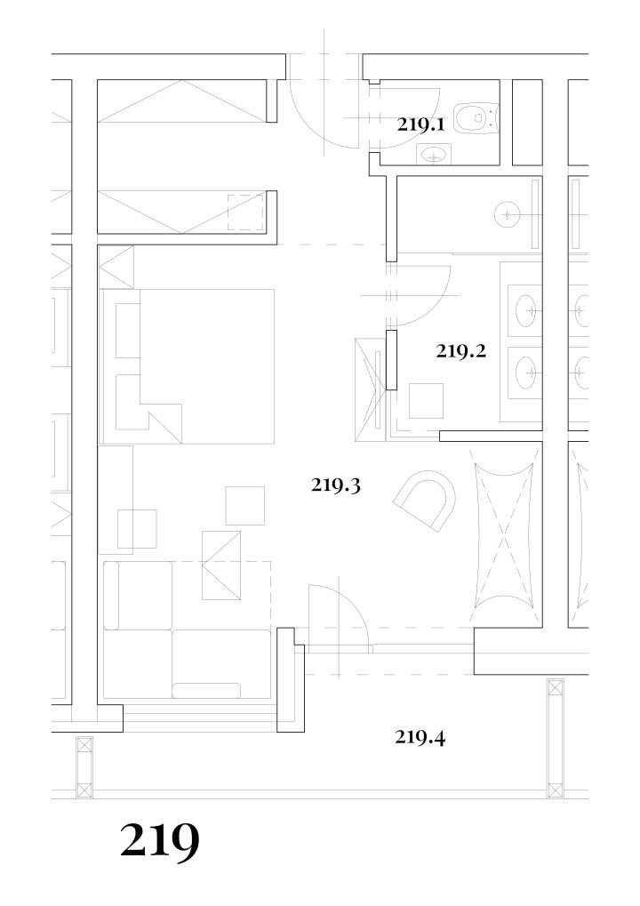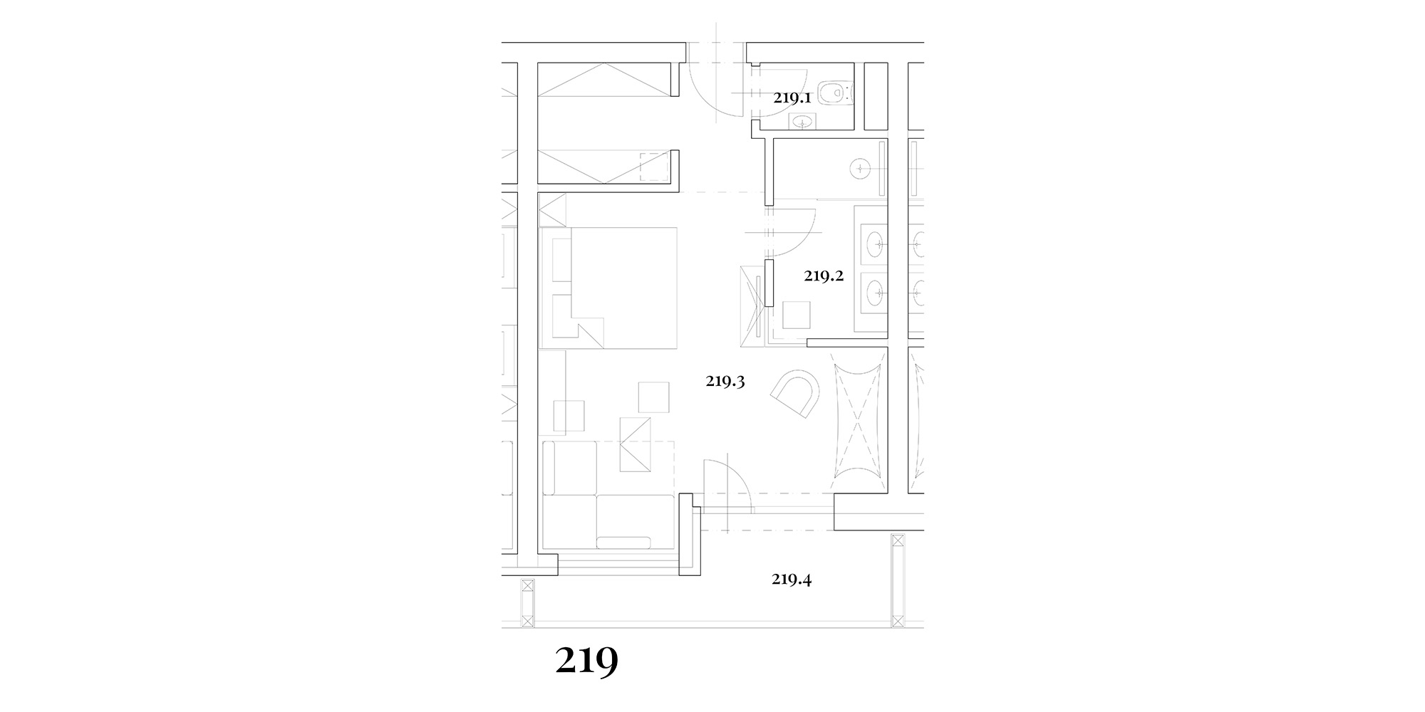 Standard apartmá nabízí zádveří s úložným prostorem, elegantní koupelnu, útulný obytný pokoj a příjemnou lodžii propojující interiér s okolní přírodou. Každý detail odráží švýcarskou kvalitu a nadčasový design. Celková plocha apartmá je 40,55 m².