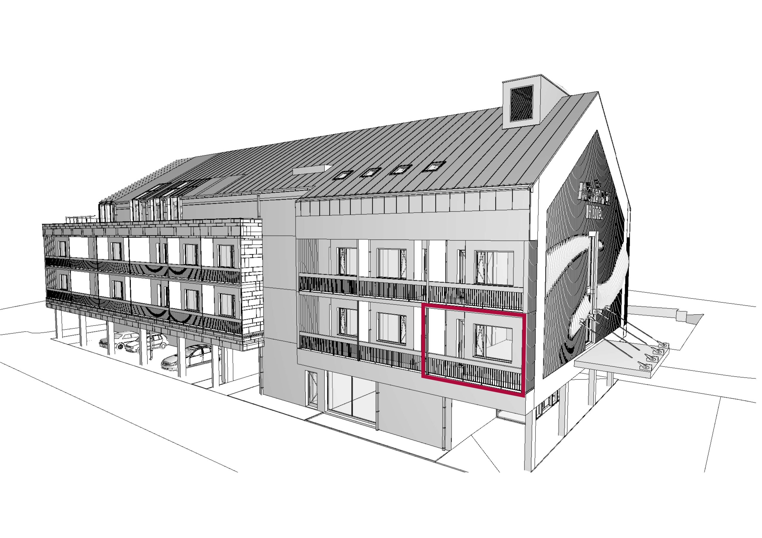 Standard apartmá nabízí zádveří s úložným prostorem, elegantní koupelnu, útulný obytný pokoj a příjemnou lodžii propojující interiér s okolní přírodou. Každý detail odráží švýcarskou kvalitu a nadčasový design. Celková plocha apartmá je 29,83 m².