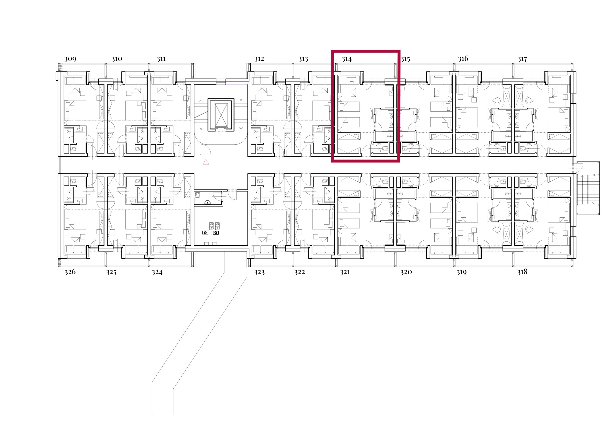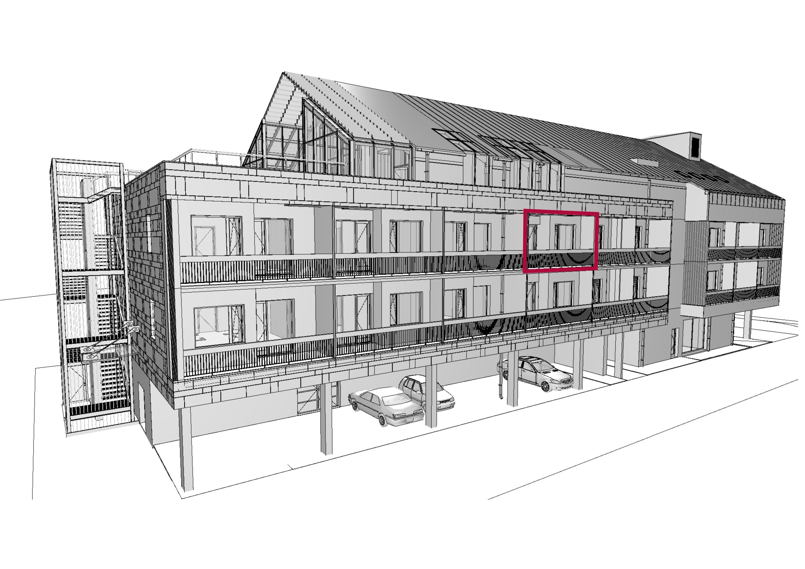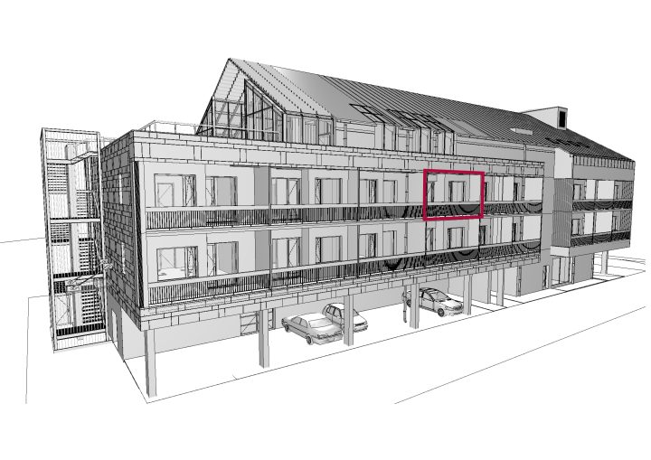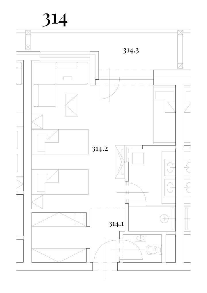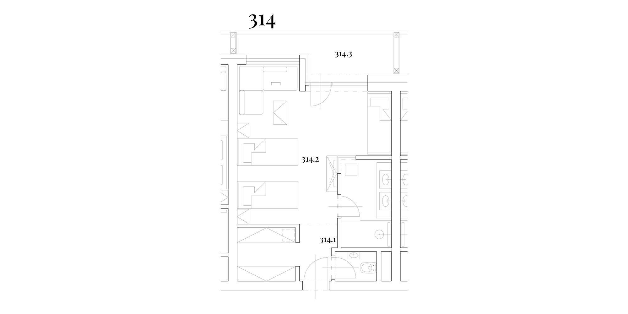 The standard suite offers a vestibule with storage space, an elegant bathroom, a cozy living room and a pleasant loggia connecting the interior with the surrounding nature. Every detail reflects Swiss quality and timeless design. The total area of the suite is 41.17 m².